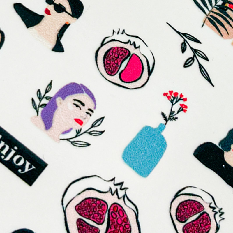 Vizes körömmatrica, a divatvilág különböző részleteivel.