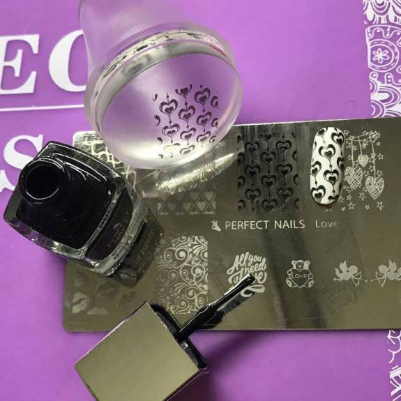 - A kiválasztott körömnyomda mintára kenjük fel a körömnyomda lakkot vagy a nyomda-és festőzselét.