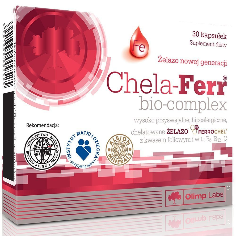 Az Olimp Chela-Ferr Bio Complex kiválóan felszívódó Ferrochel „szerves” vasat tartalmaz a hasznosulásához szükséges vitaminokkal és a vérképzést segítő egyéb összetevőkkel. A szervezet lényegesen nagyobb mértékben képes hasznosítani az ilyen aminosavas kötésű ásványi anyagokat, valamint az emésztőrendszer is jobban képes tolerálni az ilyen új generációs vegyületeket, mivel szerves anyagként képes kezelni a bevitt ásványokat.