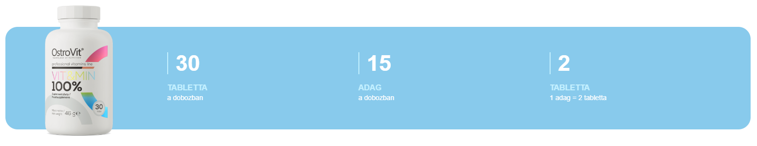 Ez a kiegészítő ideális választás azoknak, akik szeretnék biztosítani a szervezetük számára a legfontosabb vitaminokat és ásványi anyagokat egy könnyen alkalmazható formában. Tegyél az egészségedért minden nap az OstroVit 100% VIT&MIN segítségével!