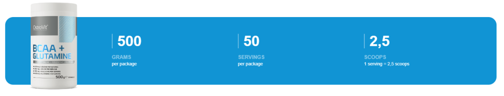 Az L-glutamin egy fehérje aminosav, amelyet a szervezet természetesen is előállít, de amikor megnövekszik a fizikai aktivitás következtében az igény rá, érdemes kívülről is pótolni. Az élelmiszerekben, mint a hús, hal, tojás, tej és tejtermékek, valamint a száraz hüvelyesek található. Az OstroVit BCAA és glutamin kombinációja szinergikus hatást gyakorol a kiegészítő minőségére, mivel az aminosavak kiegészítik és fokozzák egymás hatását.