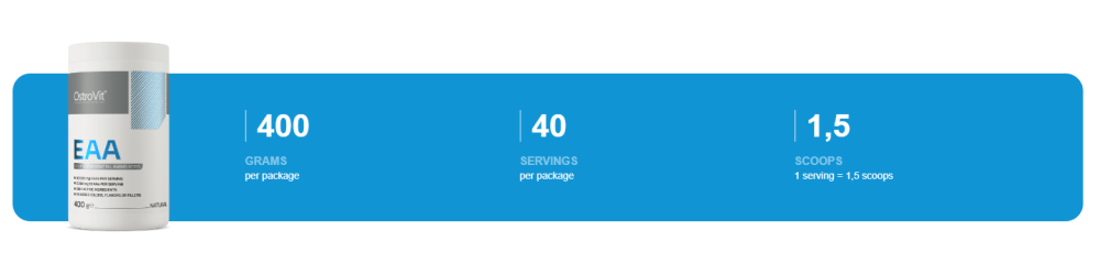 Az OstroVit EAA egy magas minőségű étrend-kiegészítő, amely 10 alapvető aminosavat tartalmaz, például L-leucint, L-valint és L-metionint. A készítmény egyszerű összetételű és természetes ízű, kényelmes por formájában kapható. Olyan sportolók és fizikailag aktív emberek számára készült, akik értékes vegyületekkel szeretnék kiegészíteni napi étrendjüket.
