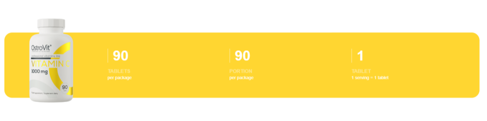 OstroVit Vitamin C 90 tabletta – kiváló minőségű étrend-kiegészítő, amely értékes forrása az L-aszkorbinsavnak (C-vitamin). A termék könnyen lenyelhető tabletta formában elérhető, elsősorban sportolók és fokozott C-vitamin szükséglettel rendelkező személyek számára ajánlott.