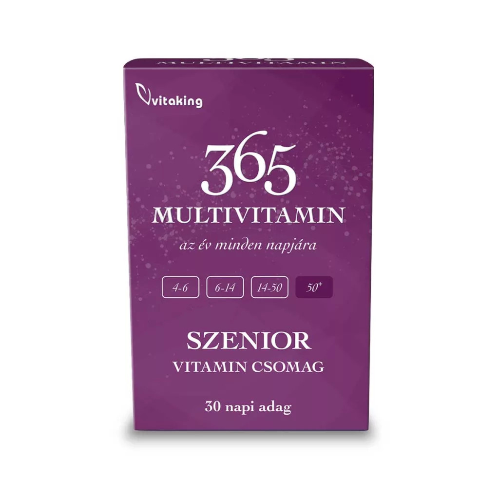 A 365 Multivitamin Szenior egy 50 év felettieknek összeállított étrend-kiegészítő. Minden létfontosságú vitamint és ásványi anyagot és egyéb hasznos tápanyagokat bőséges mennyiségben és kiváló minőségben nyújt a szervezeted számára. Az új, továbbfejlesztett formula most még hatékonyabb összetevőket tartalmaz, hogy szervezeted egész évben megkapja az optimális támogatást.