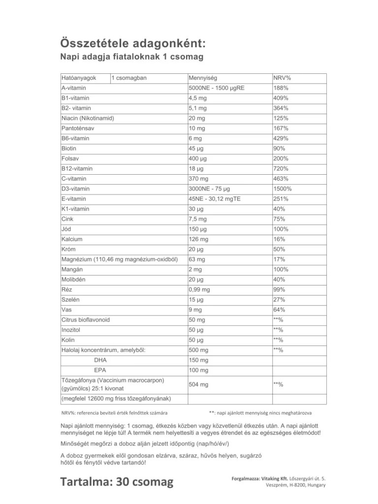 Ha értend-kiegészítőt vásárol, ne felejtse el, hogy az étrend-kiegészítők nem gyógyszerek, nem rendelkeznek gyógyhatással. Terhesség, szoptatás alatt vagy, ha bármilyen betegséget diagnosztizáltak önnél, minden esetben kérje ki kezelőorvosa véleményét mielőtt bármilyen étrend-kiegészítőt vásárolna. Fontos, hogy az étrend-kiegészítők nem helyettesítik a vegyes étrendet! Az ajánlott napi fogyasztási mennyiséget ne lépje túl!