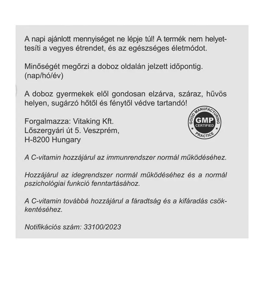 A termék nem helyettesíti a vegyes étrendet, és az egészséges életmódot.