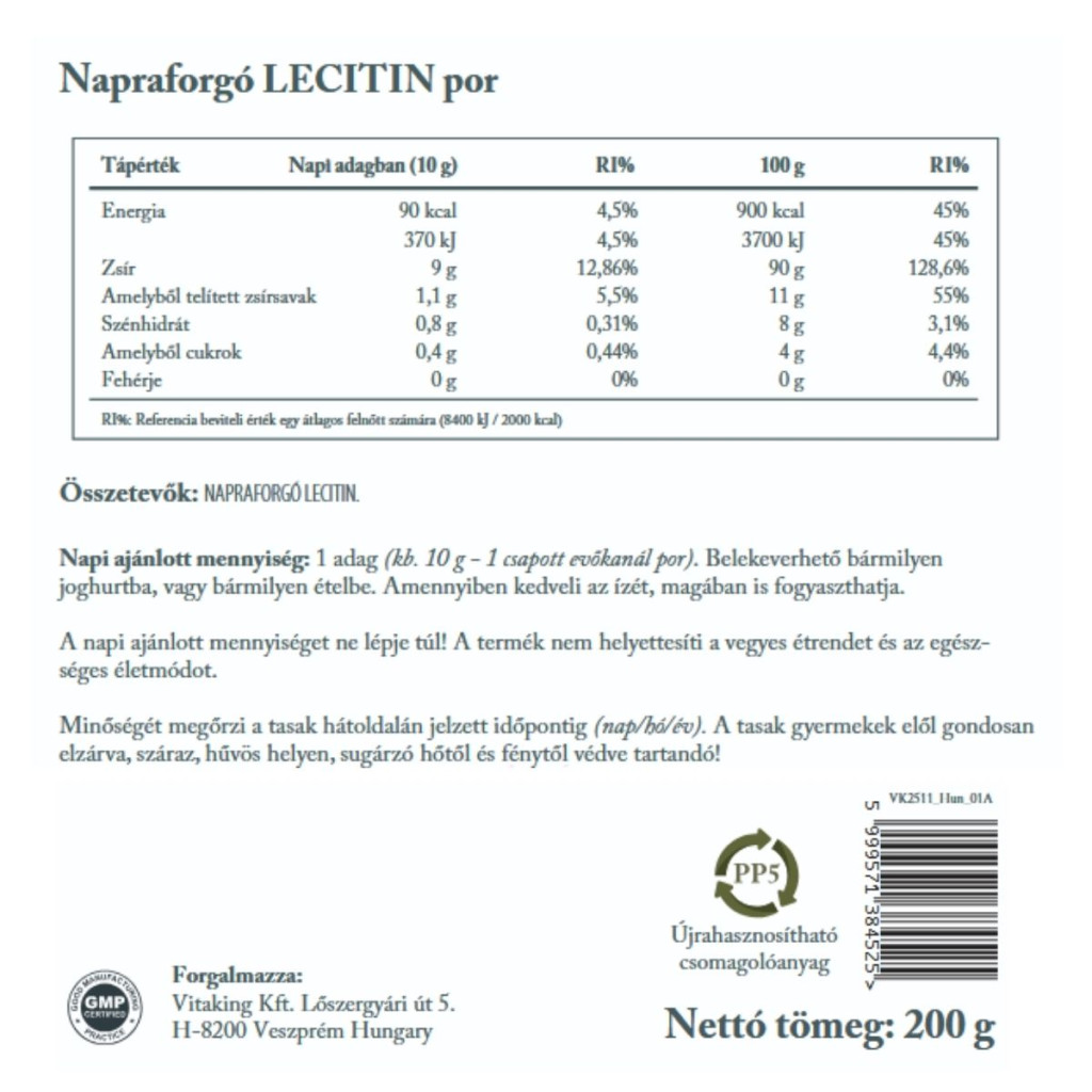 - 100% napraforgó lecitin – természetes, megbízható forrás